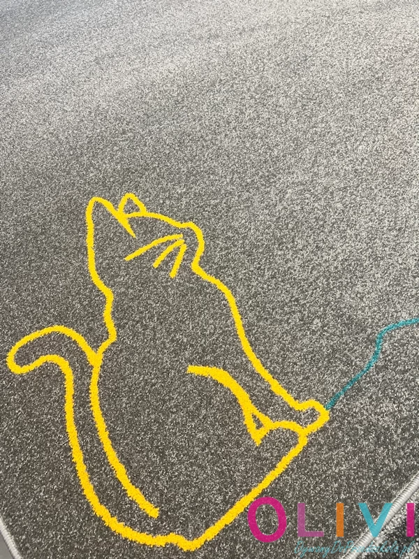 Dywan Kotki Szary to ciepła, delikatna i funkcjonalna dekoracja sali. Polski produkt z aktualnej kolekcji Olivi jest dostępny wyłącznie w sklepie należącym do Olivi dywany do przedszkola.