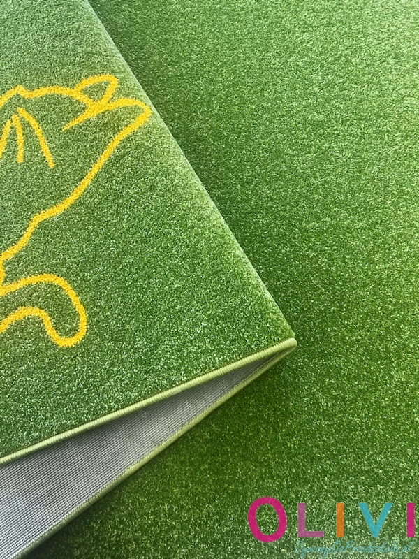 Dywan Kotki Zielony to ciepła, delikatna i funkcjonalna dekoracja sali. Polski produkt z aktualnej kolekcji Olivi jest dostępny wyłącznie w sklepie należącym do Olivi dywany do przedszkola.