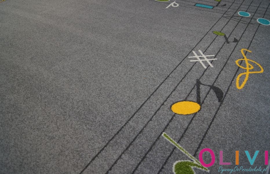 Dywan przedszkolny Nutki Szary jak dobra muzyka towarzyszy dzieciom w nauce, ruchu, emocjach i wyciszeniu. Dywan dziecięcy Nutki Szary polskiej produkcji, należy do aktualnej kolekcji dywanów do przedszkola Olivi i jest dostępny wyłącznie w ofercie sklepu należącej do Olivi dywany do przedszkola.