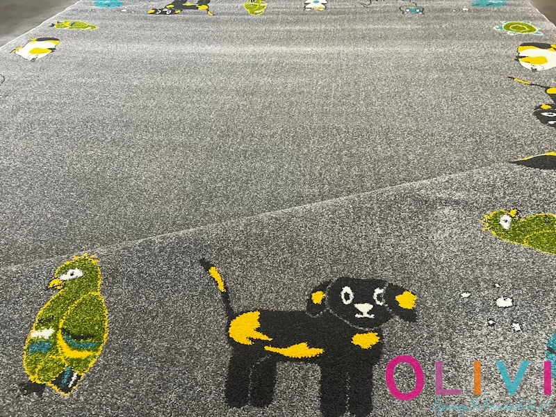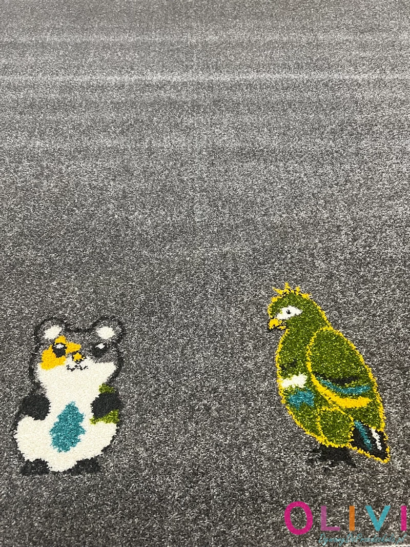 Dywan Pupile to dekoracja sali z motywem bliskim i przyjaznym dzieciom. Wzór dywanu ze zwierzątkami domowymi jak piesek, kotek, papużka, rybka, może stać się inspiracją do rozmów o opiece, empatii i emocjach. Polski produkt z aktualnej kolekcji Olivi jest dostępny wyłącznie w sklepie należącym do Olivi dywany do przedszkola.