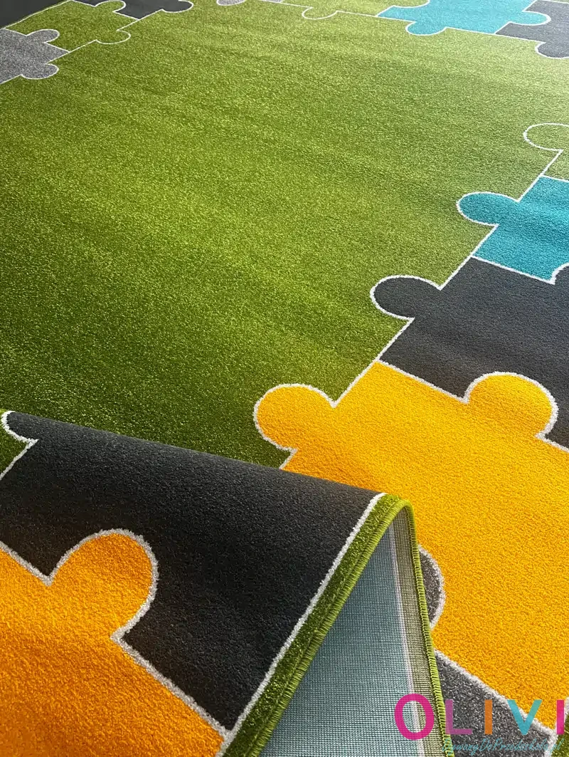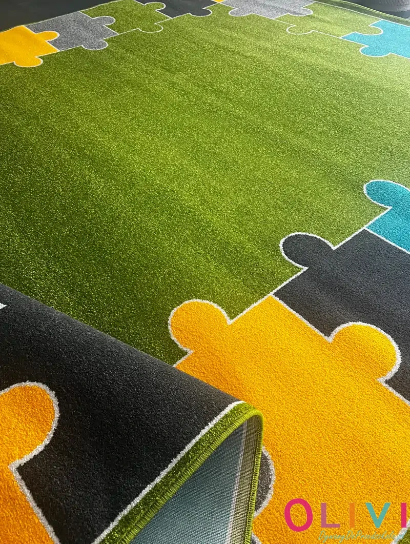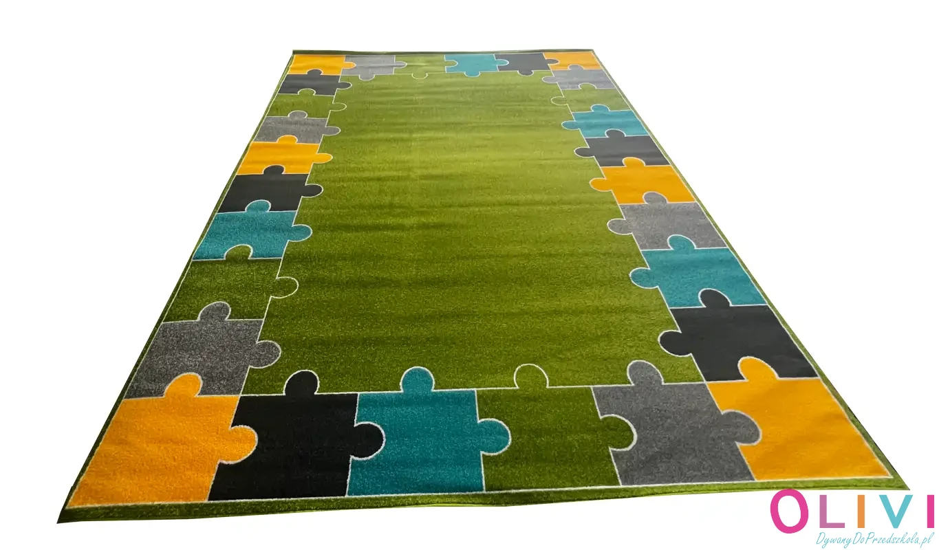 Dywan Puzzle FIT Zielony to świetny wybór w celu dekoracji sali przedszkolnej lub szkolnej. Pomaga tworzyć spokojną bazę codziennego dnia w sali. Prosty wzór, przemyślana kolorystyka i symbolika, która ma znaczenie. Dywan polskiej produkcji, należący do aktualnej kolekcji Olivi jest dostępny wyłącznie w naszej ofercie.