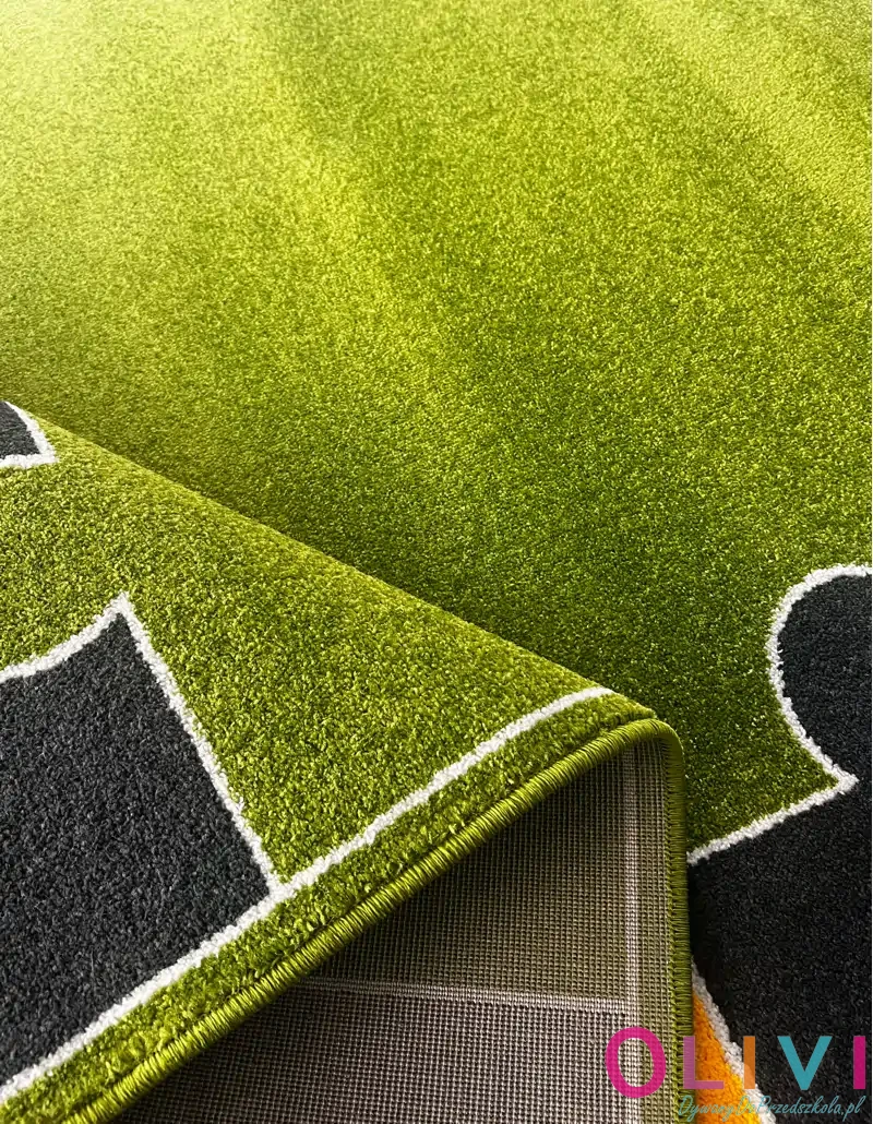 - Tło dywanu: jednolite zielone tło działa uspokajająco i porządkuje przestrzeń