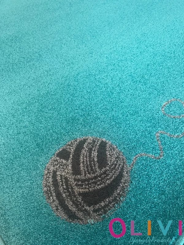 Dywan dziecięcy Kotki Morski to bardzo subtelna dekoracja sali w kolorze morskim - turkusowym, która jest ciekawą alternatywą dla dywanów jednokolorowych. Motyw zarysowanych uroczych kotków i kłębków włóczki rozmieszczonych na przeciwległych bokach dywanu sprawiają, że dywan jest przyjazny dzieciom , dodaje sali ciepła i lekkości ale bez nadmiaru bodźców.