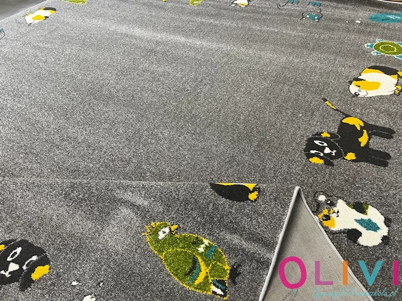 - Motyw dywanu: to zazwyczaj ukochane motywy dzieci: psy, koty, rybki i inne domowe zwierzęta towarzyszą dzieciom na co dzień wzbudzając ciekawość i empatię.