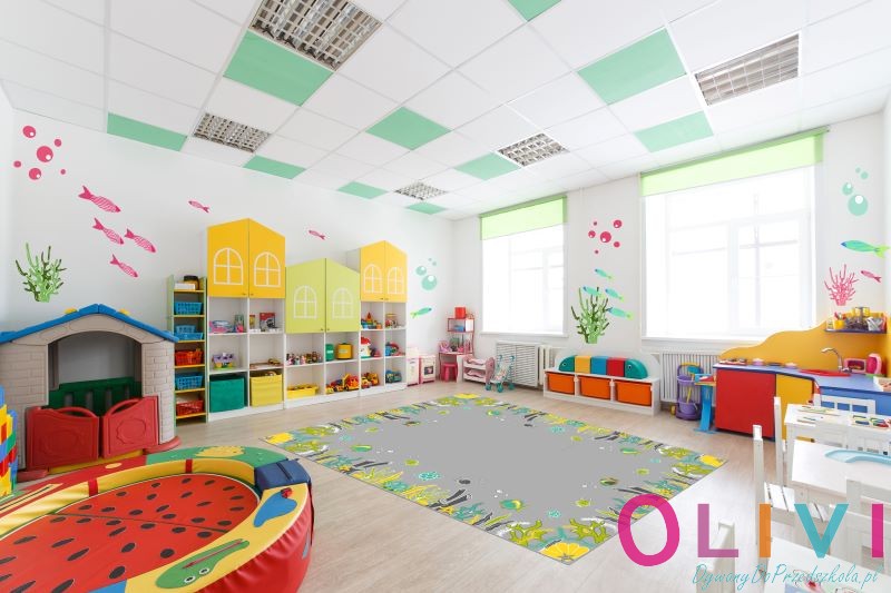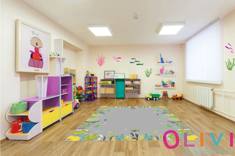 Z taką dekoracją jak dywan dziecięcy Rafa Szary czas w sali powinien płynąć spokojnie, zgodnie z harmonogramem dnia. Wodne, oceaniczne motywy kojarzą się z harmonią i spokojem. Podwodny świat złożony z roślin rafy koralowej, ryb, rozgwiazd i żółwików w ramowym układzie zaprasza do rozmów, obserwacji i odkrywania świata. Daje nauczycielom przestrzeń do prowadzenia zajęć we własnym trybie.