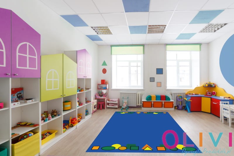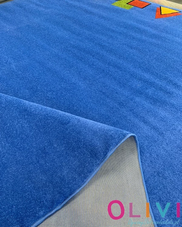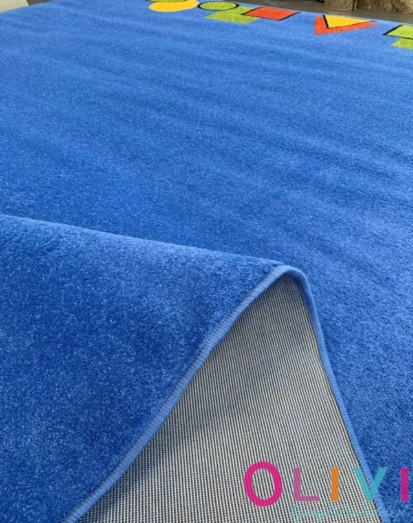 - Tło dywanu: Niebieskie energetyczne tło doskonale pasuje do sal przedszkolnych.