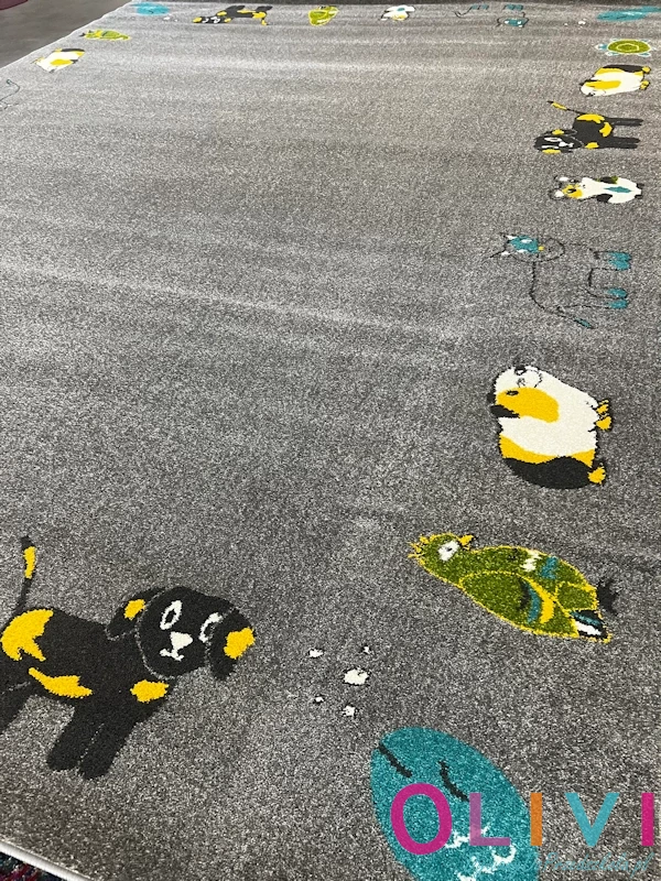 - Motyw dywanu: to zazwyczaj ukochane motywy dzieci: psy, koty, rybki i inne domowe zwierzęta towarzyszą dzieciom na co dzień wzbudzając ciekawość i empatię.