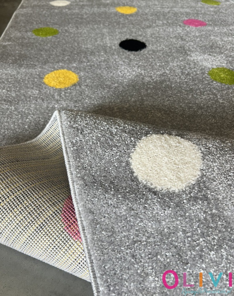 Dywan OLIVI SOFT EDU Groszki Kolorowe Light Grey w rozmiarze 2.40x4.00 m