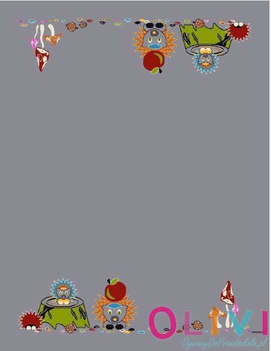 - Tło dywanu: jednolite szare tło sprzyja koncentracji, wycieszeniu i organizacji zajęć. Uzupełniają je soczyste, ale nienarzucające się akcenty kolorystyczne: pomarańcz, róż, czerwień, zieleń, żółć i niebieski, które ożywiają wzór i pobudzają dziecięcą wyobraźnię, nie przebodźcowując sali.