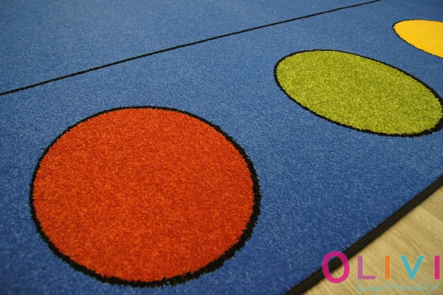 Dywan do przedszkola 4.0 x 5.0 m KOŁA Niebieski Przeznaczony do jednostek oświatowych